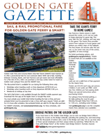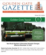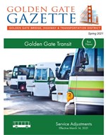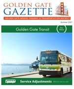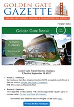 September Service Changes, All Aboard Bay Area Transit, SRTC Relocation, Sail & Rail promotion. For printable PDF copy this link into your browser: https://www.goldengate.org/assets/1/6/Fall21_Gazette.pdf