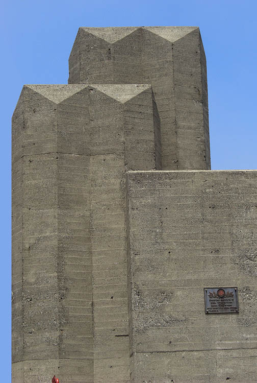The concrete at the base of the south tower also received an Art Deco treatment.