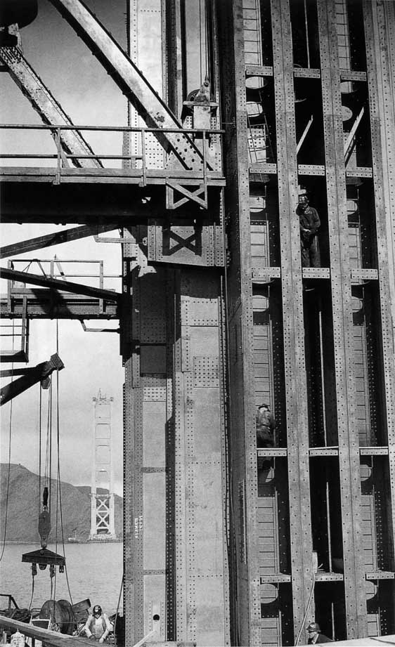 A tree trunk is less than solid wood, making it strong but light. Similarly, the Bridge towers, with their cellular construction, provide the needed strength with a minimum amount of steel. |