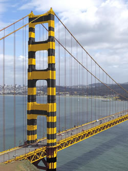 Only rarely must the Golden Gate Bridge withstand earthquakes or strong wind, but everyday it must fight another threat: corrosion of the steel which creates a byproduct called rust.