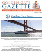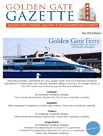 Golden Gate Ferry September schedule changes, Larkspur Ferry Service and Parking Expansion Study, Climate Commitment, construction begins on Sausalito Landing Landslide Project.