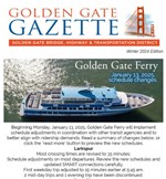 Golden Gate Ferry & Bus January Schedule Changes, Holiday Schedules, New Wayfinding Signs, Group Fares, SMART Petaluma North Station Opening Soon, New Warriors Uniform Inspired by GGB.